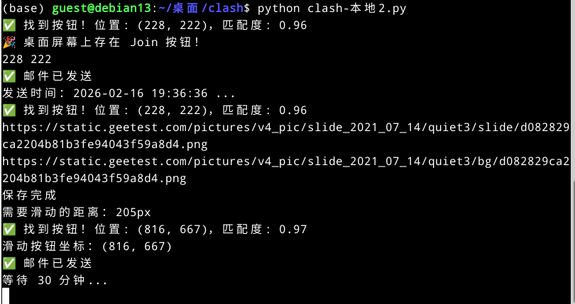 如图所示脚本运行可以自动点击join按钮和滑动按钮,按时签到薅羊毛!